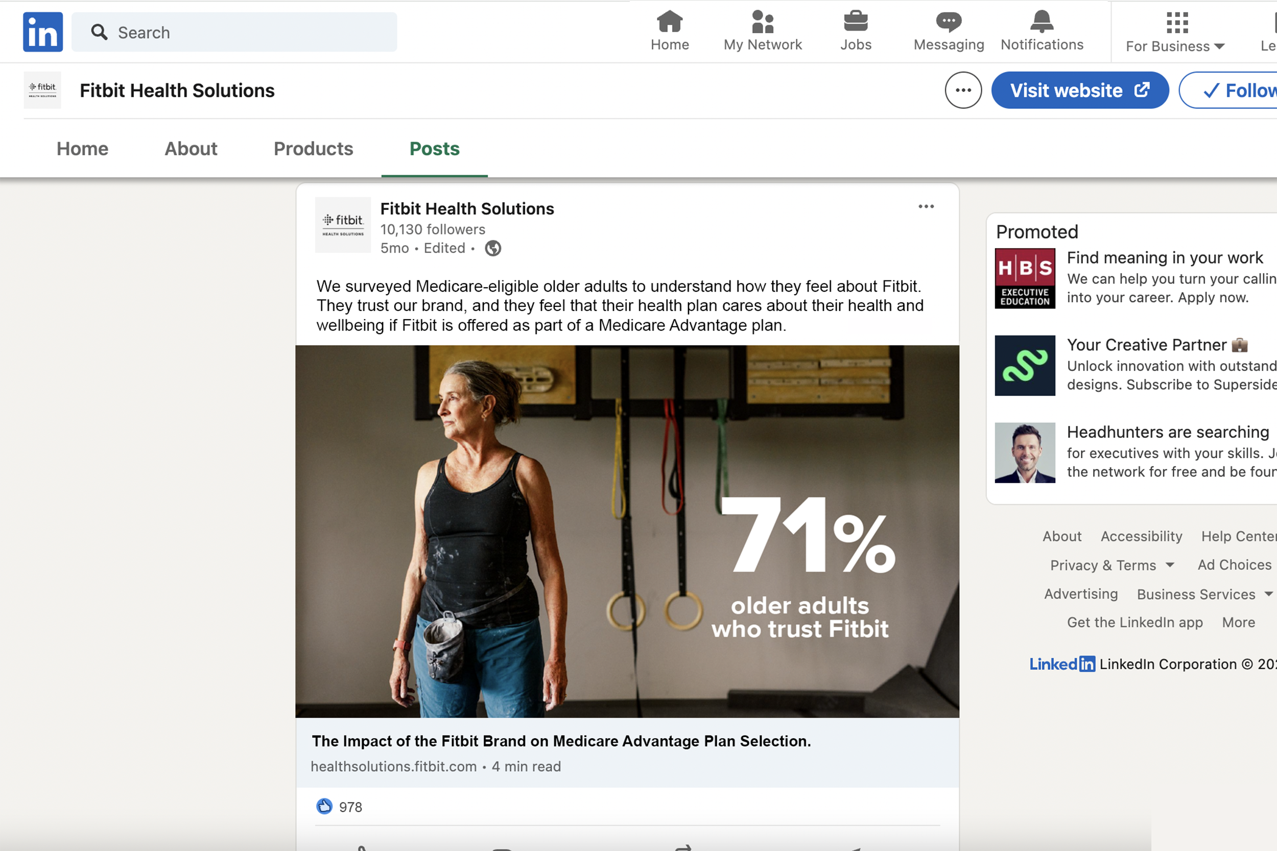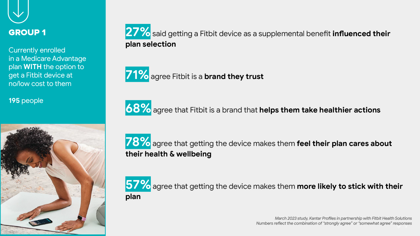We'd always known that older adults love Fitbit, but it was time to quantify that love. I wrote and designed a study to measure the impact of the Fitbit brand on Medicare Advantage plan selection, member satisfaction & retention. We leveraged the results data to great effect; so great that it won Kantar's 2023 Business Impact Award.